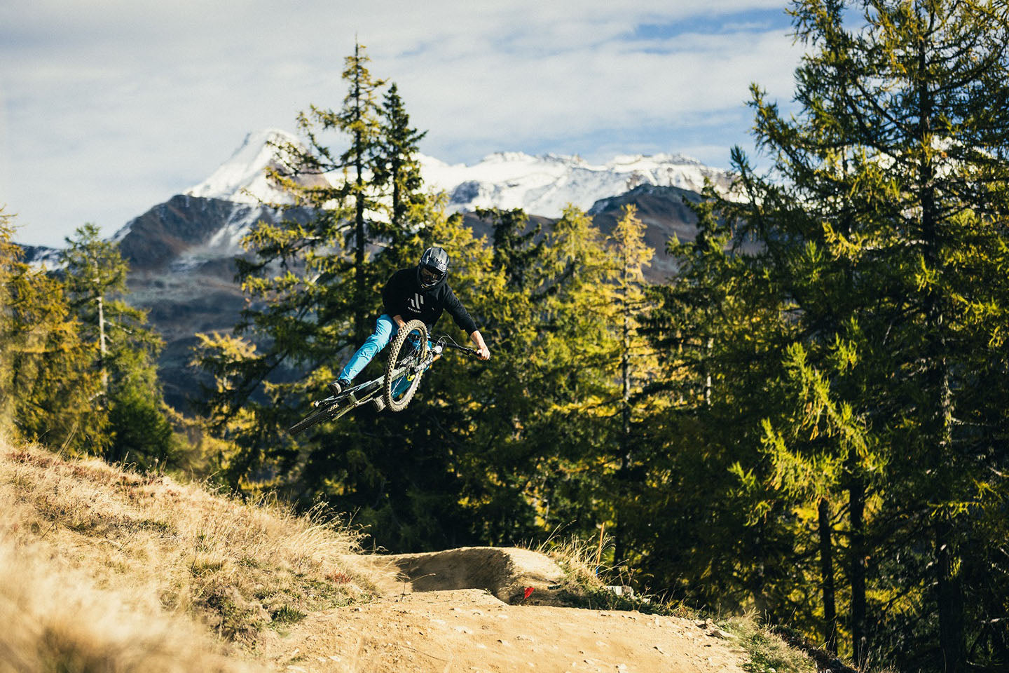 Para el segundo día el ritmo cambia, ya que cogemos nuestros cascos integrales y nos dirigimos al Bellwald Bike Park. Conocido por sus saltos de formas perfectas, su flow interminable y su telón de fondo de ensueño, este es uno de los bike parks más queridos del Valais.