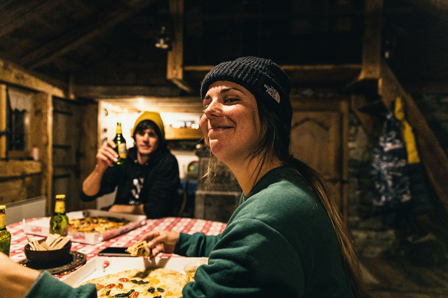 Llegamos a mi refugio de montaña en Verbier a altas horas de la noche y todos nos preparamos para una noche de pizza, cerveza y vino. Eso es todo lo que necesitamos después de un gran día en bicicleta.