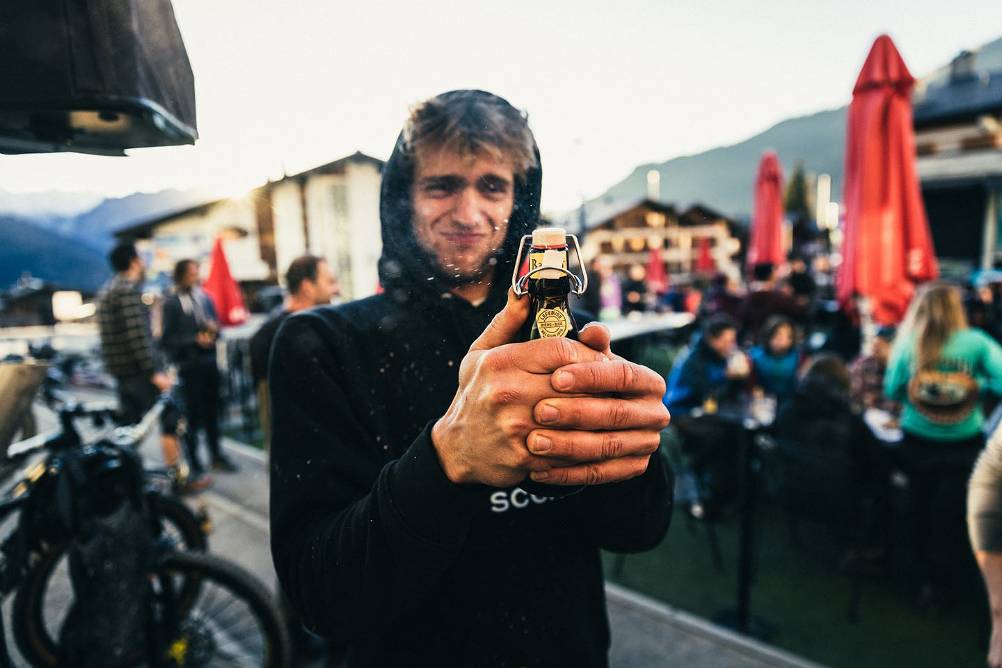 Nos despertamos con un aire gélido de montaña y algunas cabezas nubladas. Nuestra planificación ha funcionado perfectamente y estamos en la ciudad para el fin de semana de clausura del Verbier Bikepark. En la cima del bike park disfrutamos de las impresionantes vistas, aunque ¿adivinas quién se ha olvidado el cortavientos otra vez?